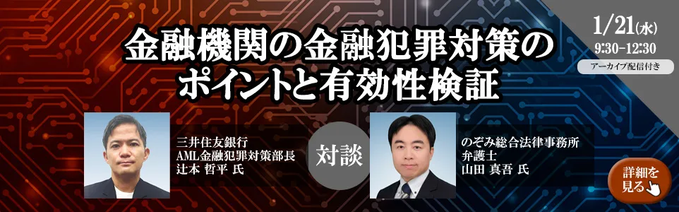のぞみ総合法律事務所 弁護士 山田 真吾 氏 三井住友銀行 AML金融犯罪対策部長 辻本 哲平 氏