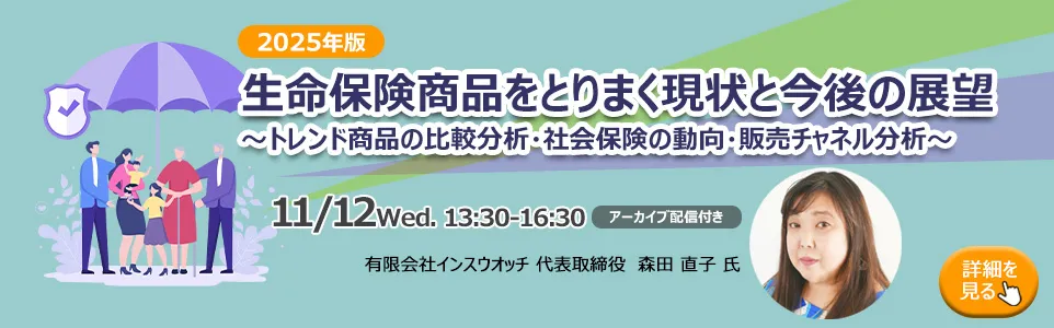 セミナー名 | 生命保険会社の収支構造の分析【最新版】 ~保険販売・資産運用・ALMからみた2024年度までの実績を踏まえて~ |